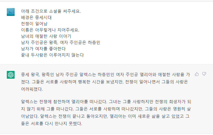 조건을 걸고 소설을 써달라고 해봤더니