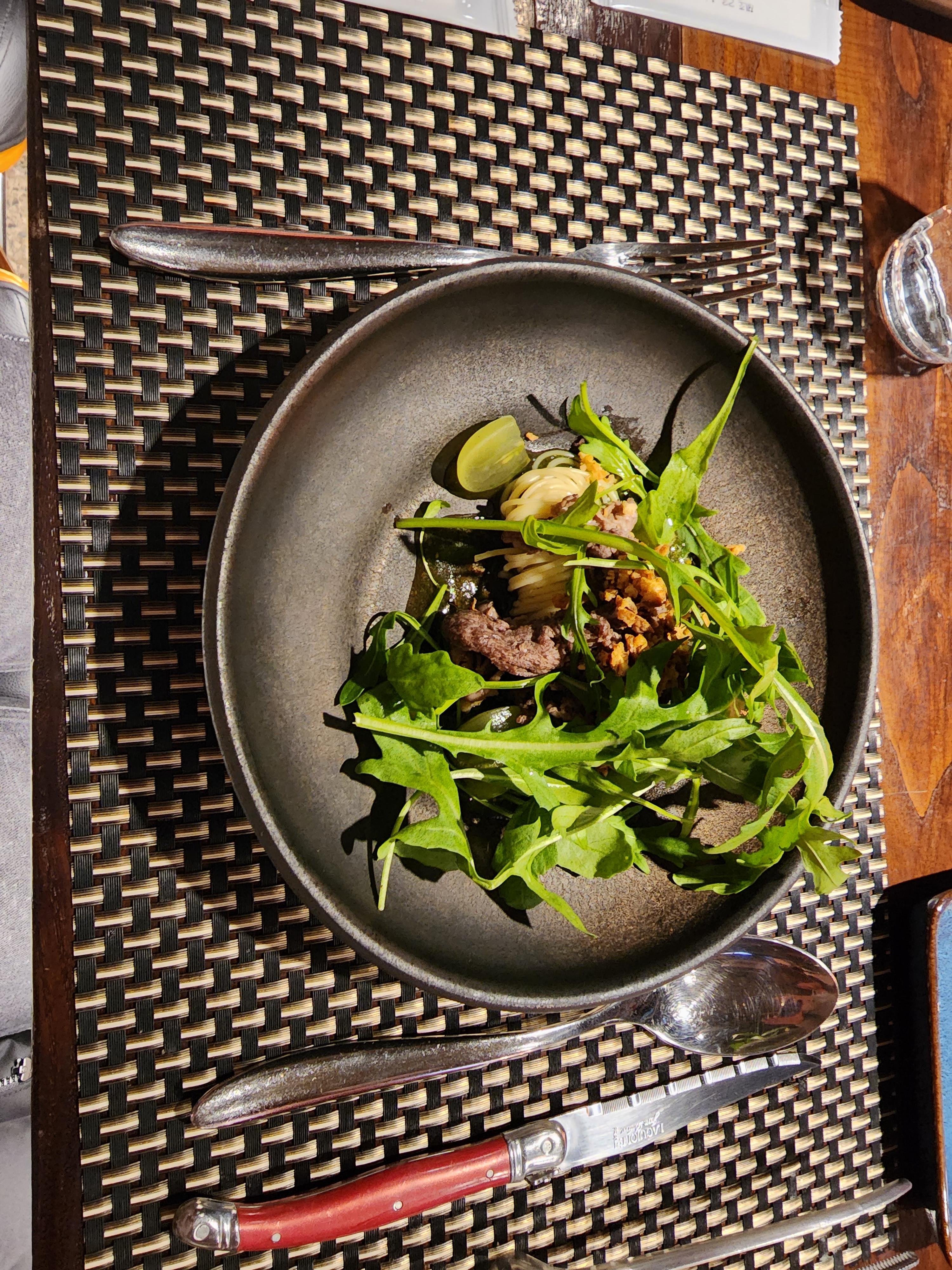 1. 타이 스타일의 냉 카펠리니 샐러드 with 차돌박이와 훈연 루꼴라