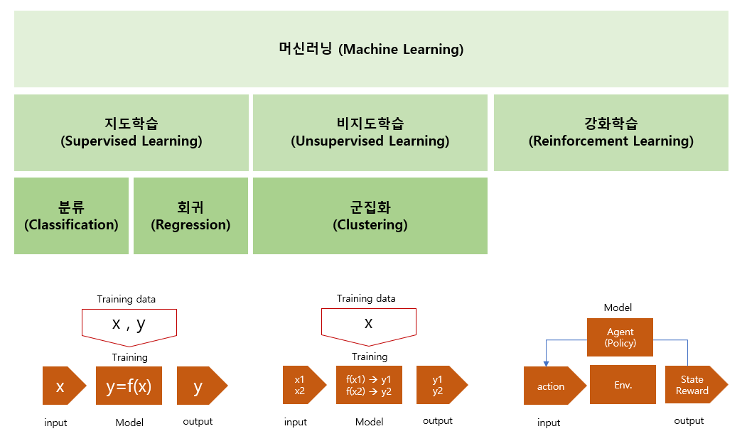 크게 나누면 지도학습, 비지도학습, 강화학습으로 구분할 수 있습니다.
