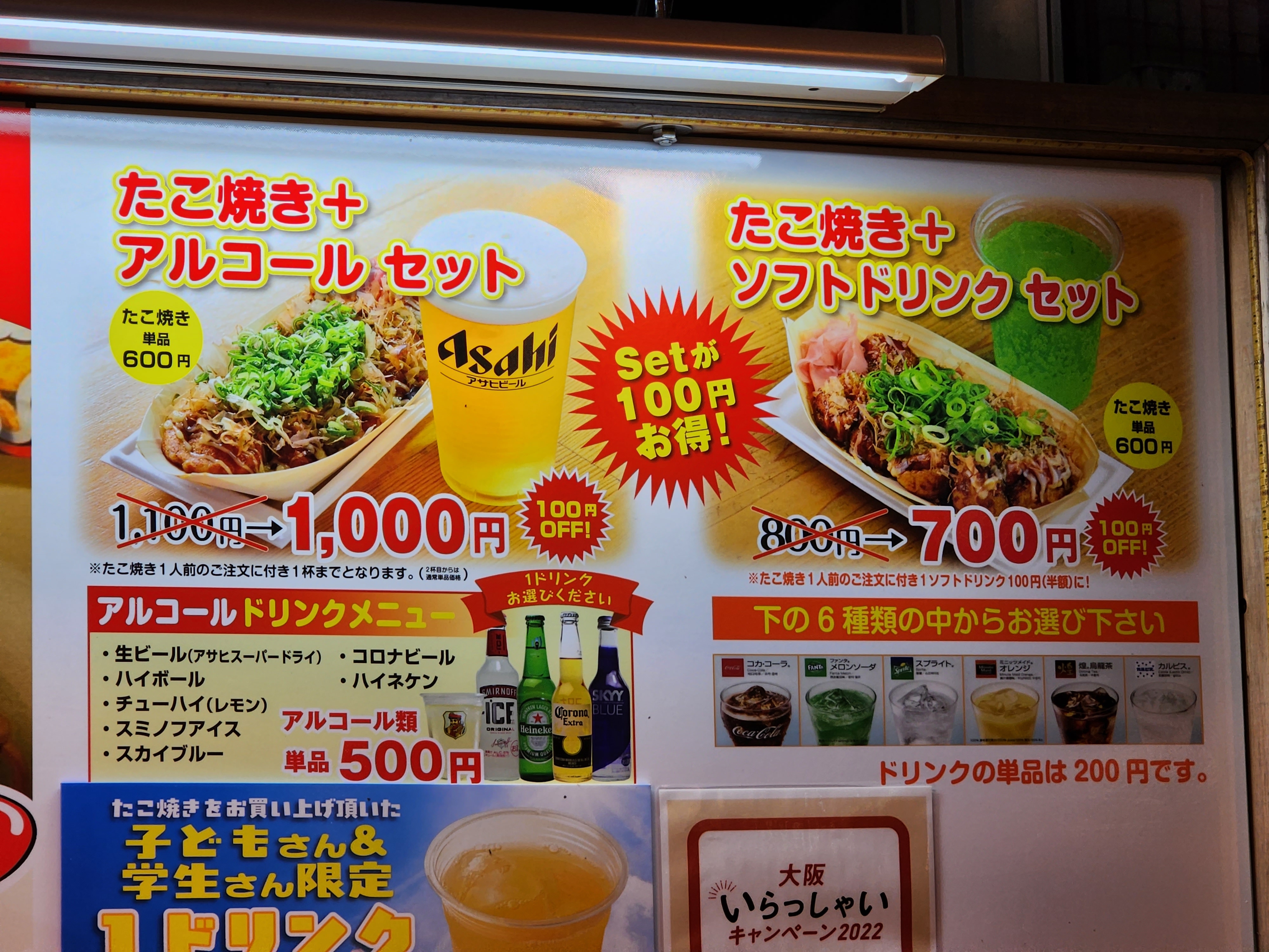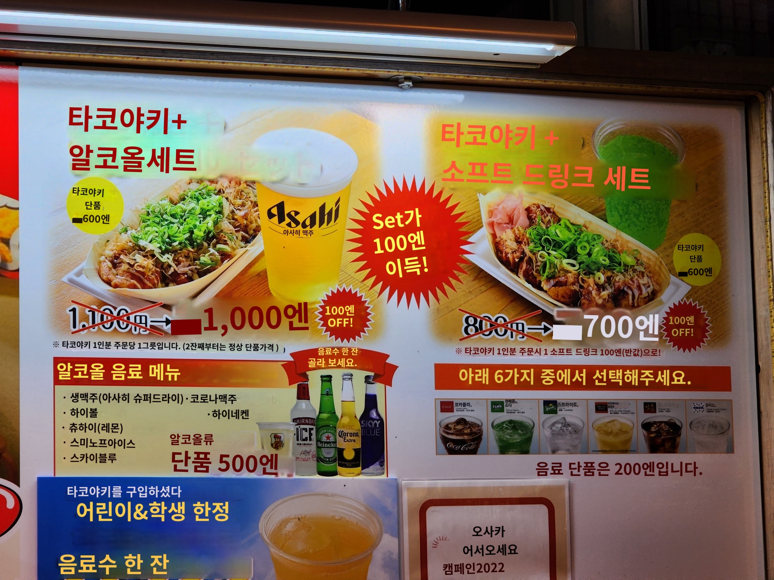 알코올와 타코야키 세트 (1000엔)로 간장소스와 하이볼 주문했어요.