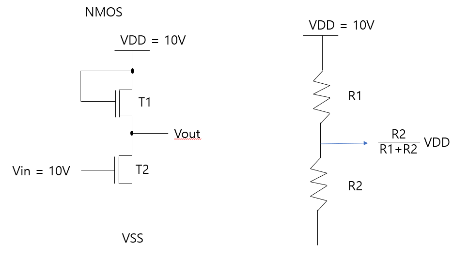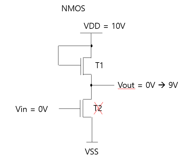 식으로 표현하면 Vout = VDD – Vth가 되겠습니다.
