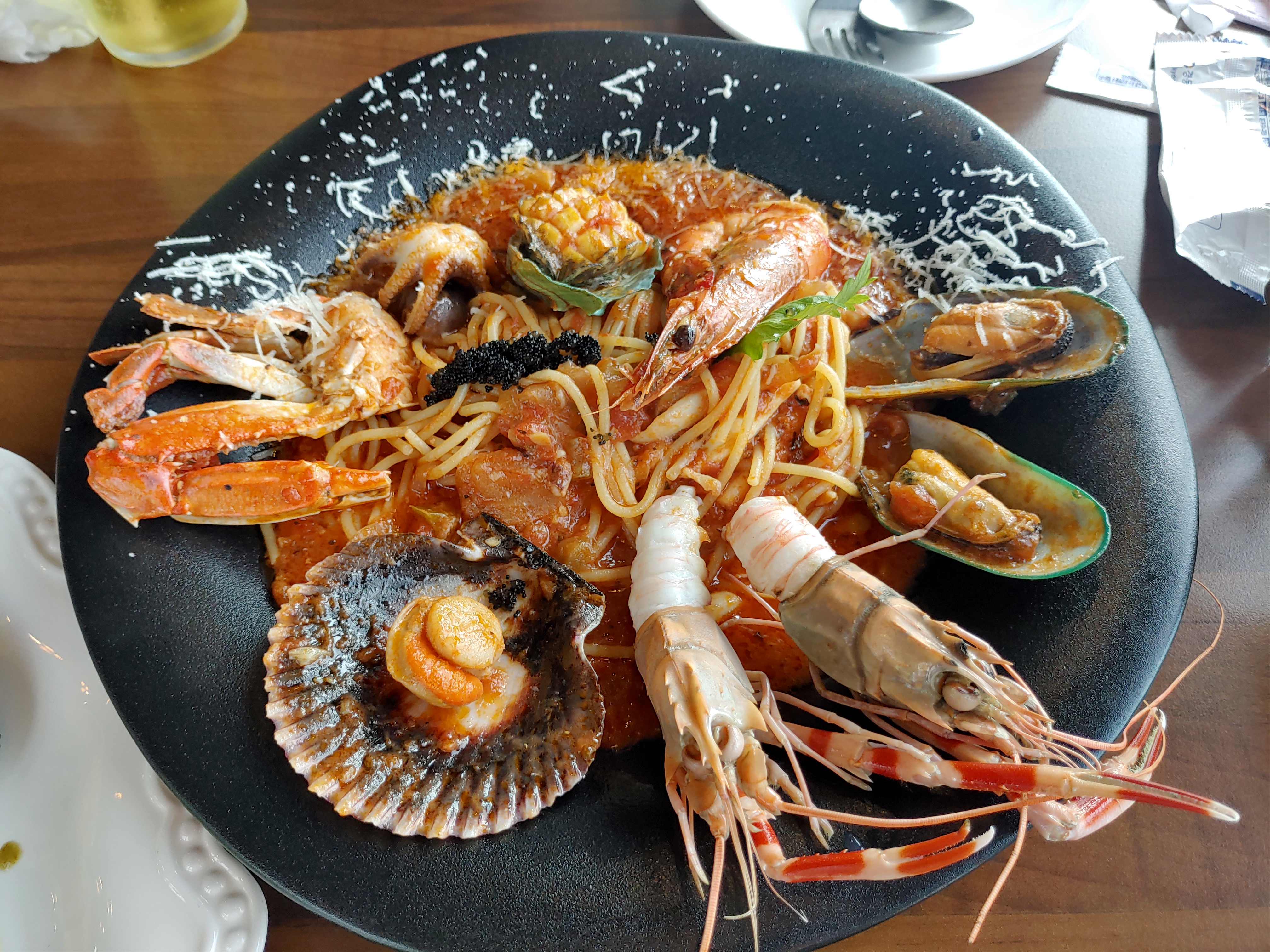 파스타면도 쫄깃하게 익었고 해산물이 듬뿍 들어가 바다향과 토마토 소스가 잘 어우러진 파스타 입니다.